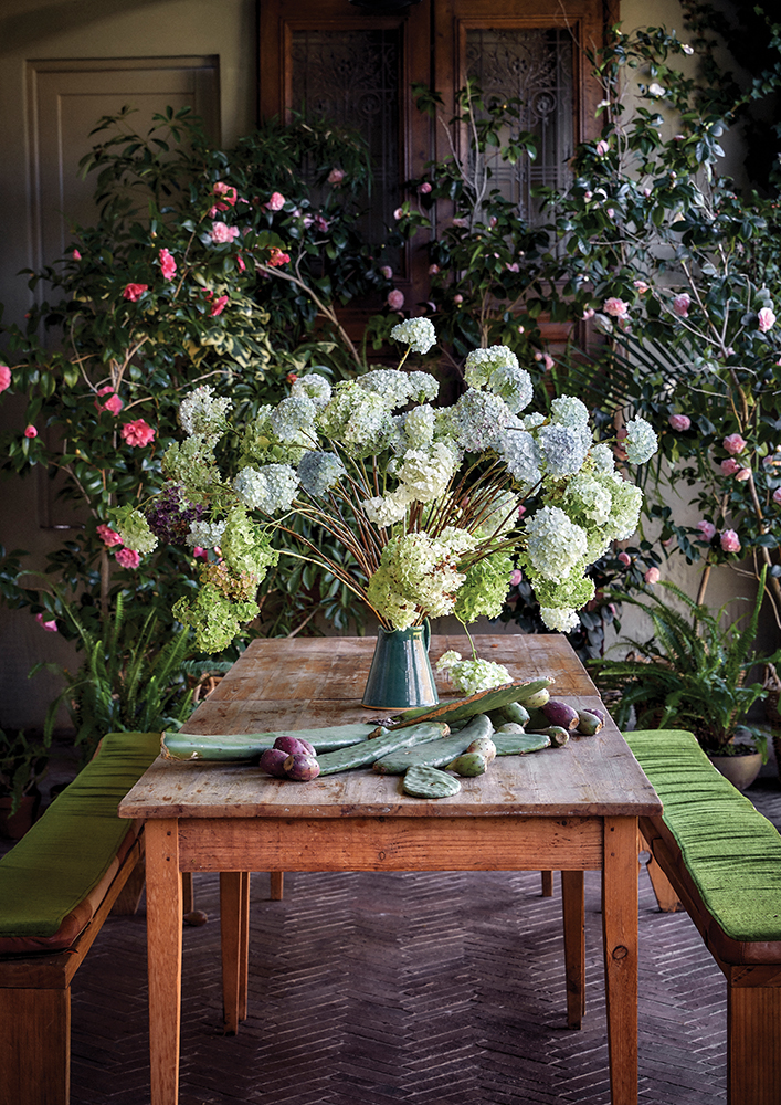 To ensure that they had the flora they needed to create distinctively dramatic floral arrangements, Dané and Chris acquired a property in Johannesdal, South Africa, on which they could “plant for the vase”, says Dané.