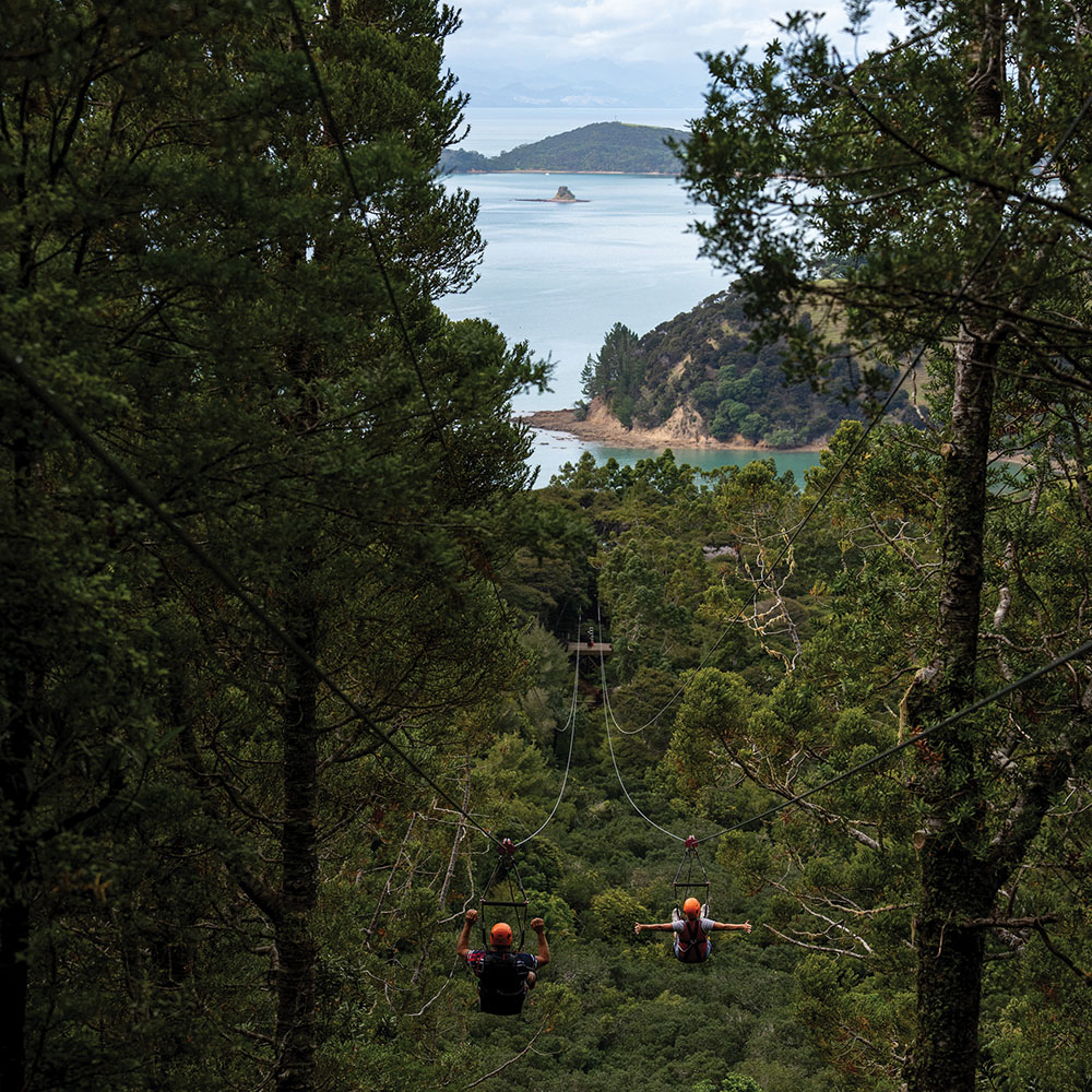 See Waiheke from a new perspective with Man O’ War Forest Flight. Three dual ziplines and connecting boardwalks weave above and below ancient kauri canopies with epic island views. Designed for a range of ages and fitness levels it’s a gentle thrill and an unforgettable experience to share with family and friends – no fearlessness required.