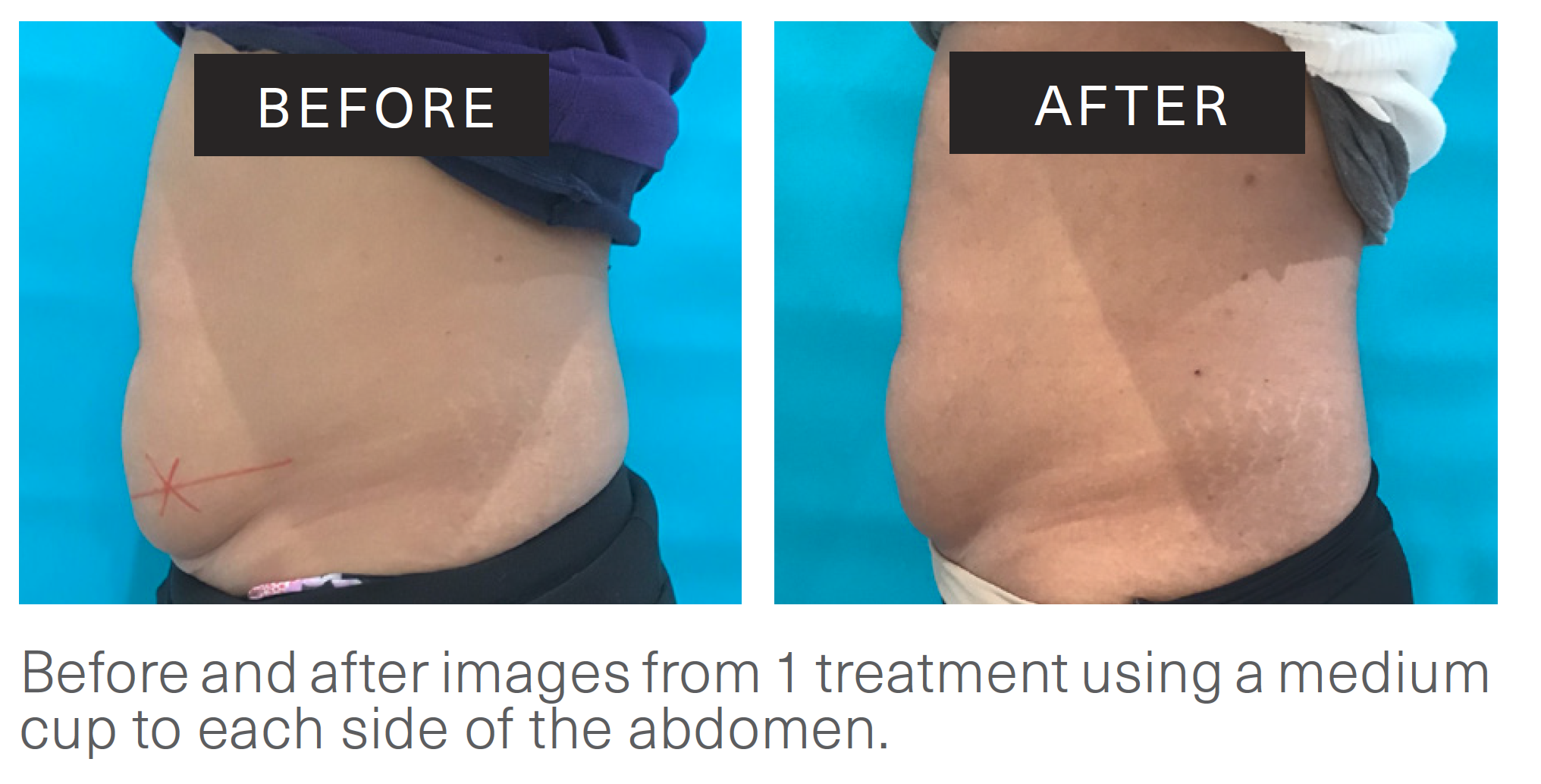 For the procedure, a vacuum applicator is applied to the area which then draws in the skin (and fat), forming a suction seal. This stays on for 70 minutes freezing the area and then over the course of two to 12 weeks, you will start to see the results as the fat cells are naturally flushed from the body permanently. Optimal results are seen at three months post treatment.