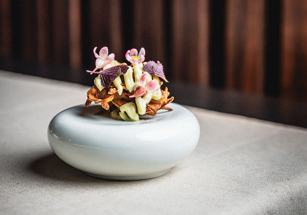 We tried the set menu, which was a great way to understand Chef Vicky’s thinking behind his dishes. It was also a bit of a journey that moved between familiarity and surprise, playfulness and precision. It began with oysters. Resting in a sauce inspired by sol kadhi, a traditional Indian drink made from mangosteen and coconut. The soft pink hue gave way to a tangy, savoury and lightly spiced flavour that paired beautifully with the fresh oyster hiding beneath.