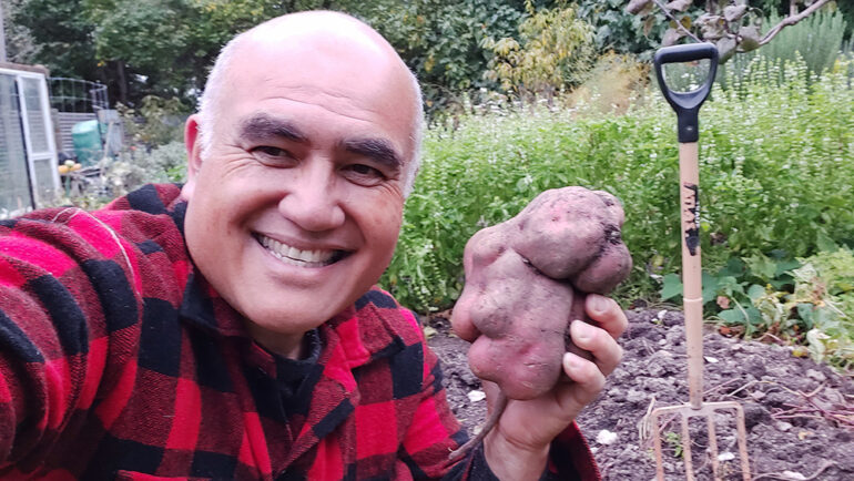 With his incredibly easy-going nature, approachability, and no-nonsense delivery, it’s little wonder that Ngāti Porou gardener Adrian Sutherland has become a social media sensation in the online horticultural world of Aotearoa and beyond—not to mention a bit of a Gisborne local celebrity. A fame that also comes with a few perks.