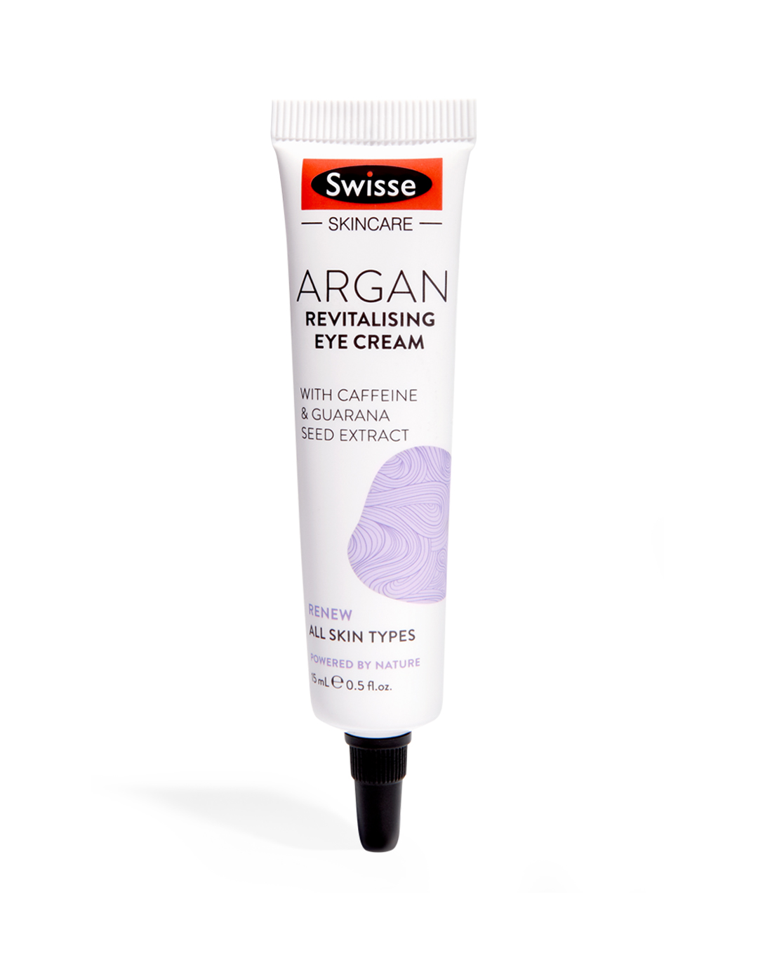 Swisse Argan Revitalising Eye Cream is an ultra-hydrating formula that replenishes and refines the delicate under-eye area to prevent signs of premature aging for a more youthful and rested appearance. Contains Argan Oil to nourish, replenish and helping to prevent signs of premature aging, plus Squalene and Grapeseed Oil to help preserve, nourish and intensely hydrate the skin. swisse.co.nz