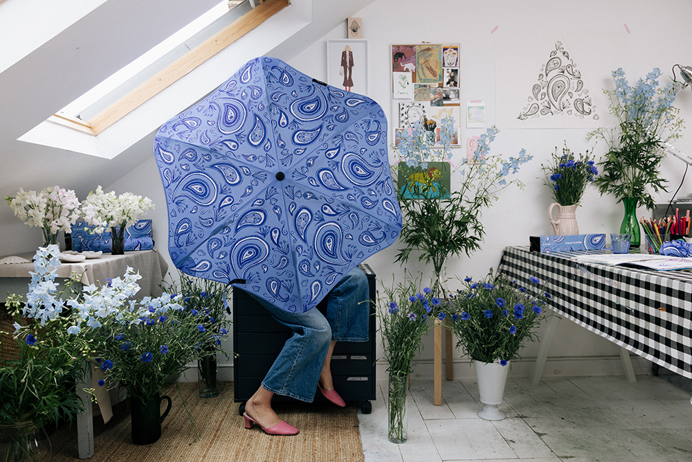 Inspired by soft brushstrokes and hand sketched patterns, the print features paisley in a captivating cornflower blue designed to stand out even on the greyest of rainy days. “Cornflowers are my favourite flower,” says Costelloe. “The cornflower blue colour has been my favourite since I was a child.”