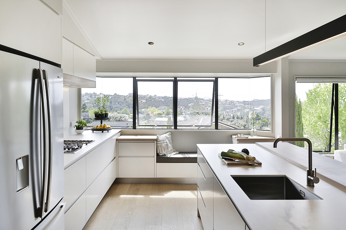 Seeing the mood board for the first time, with all the samples of colours and materials was one of the most memorable moments of the whole process for Julie and Ian; also, choosing the benchtop material, then selecting each slab individually before it was templated, so they could see where the veining would appear on the final benchtop. “That was a special service,” says Jane.