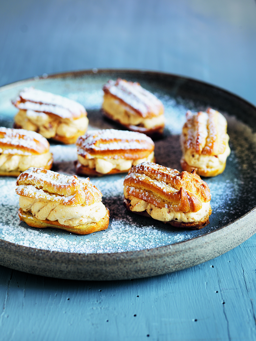 These are inspired by an iconic cake they make at La Glace called ‘sports cake’. It has nothing to do with sports, but there has always been a tradition in Copenhagen of naming cakes after famous people and events. This one was named after a late-19th-century political play called Sports Men. Here, I have focused on the choux pastry and a very simple cream, so they are easy to make at home, but they don’t take the place of the real thing.