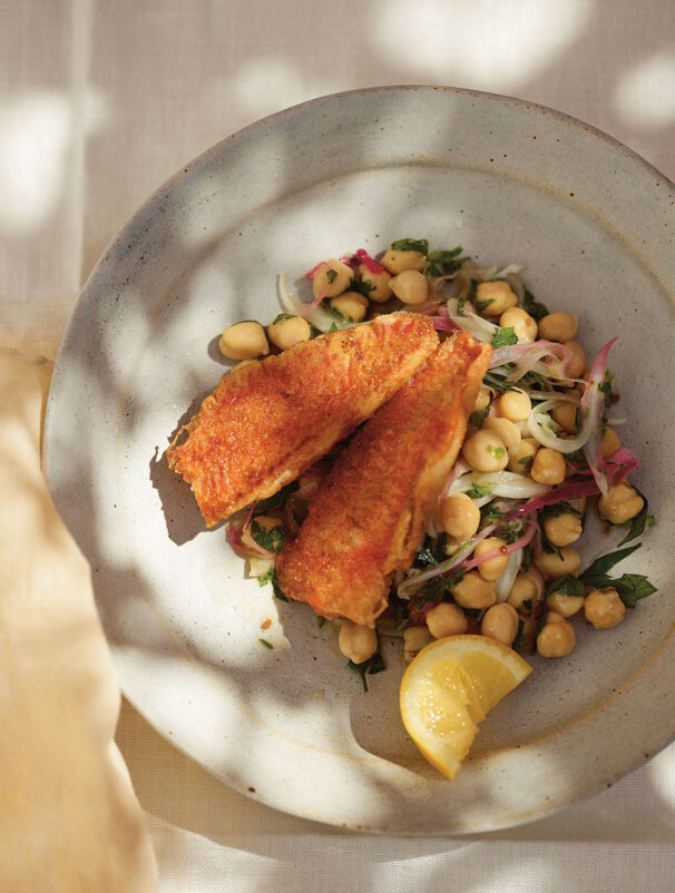 Best known for the way its sweet, nutty flavour – which some liken to a cross between crab and lobster – stands out whether it’s grilled or pan-fried, red mullet is a winner. This recipe celebrates this delightful fish by pairing it with a wonderful chickpea salad, complementing the natural flavours with the freshness of the lemon and aromatic fennel seeds. The contrast between the warm fish and the cool herbaceous salad creates a food experience that is balanced and exciting.