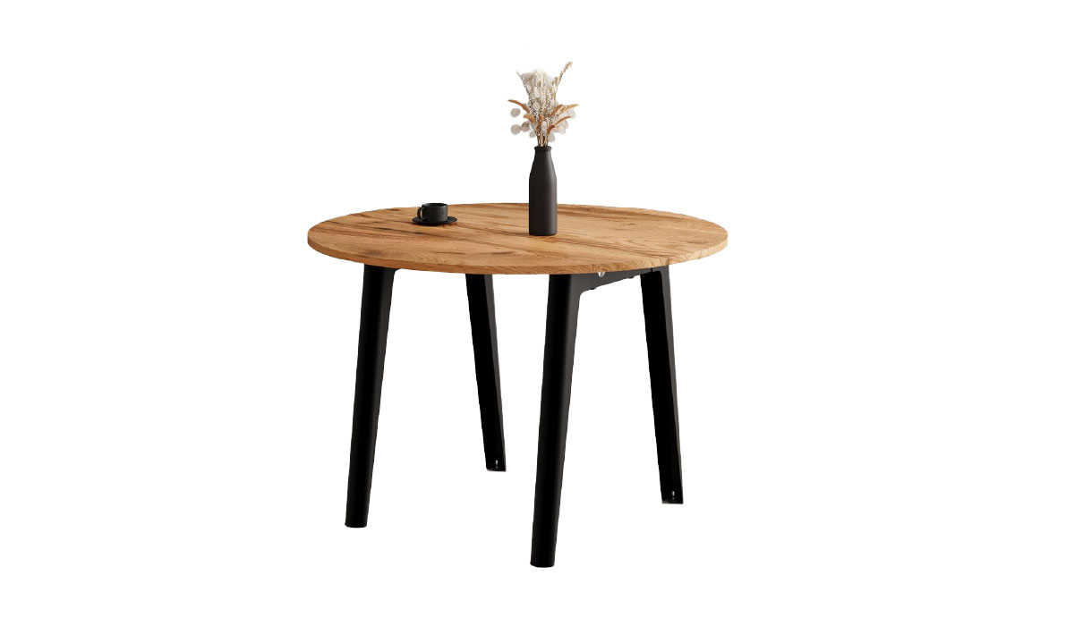 New Modern Dining Table 110cm Round – Recycled Oak in Graphite Black