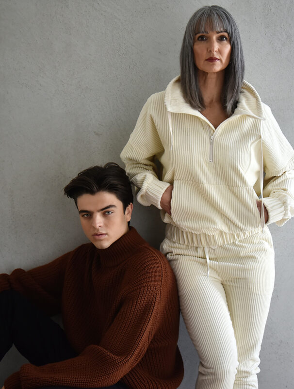 Fiona wears: COS Knit Sweater Dress. Fiona wears: CAMILLA AND MARC Lily Hoodie. Tanner wears: COS Cable Knit Sweater and R.M. Williams Loxton Jean