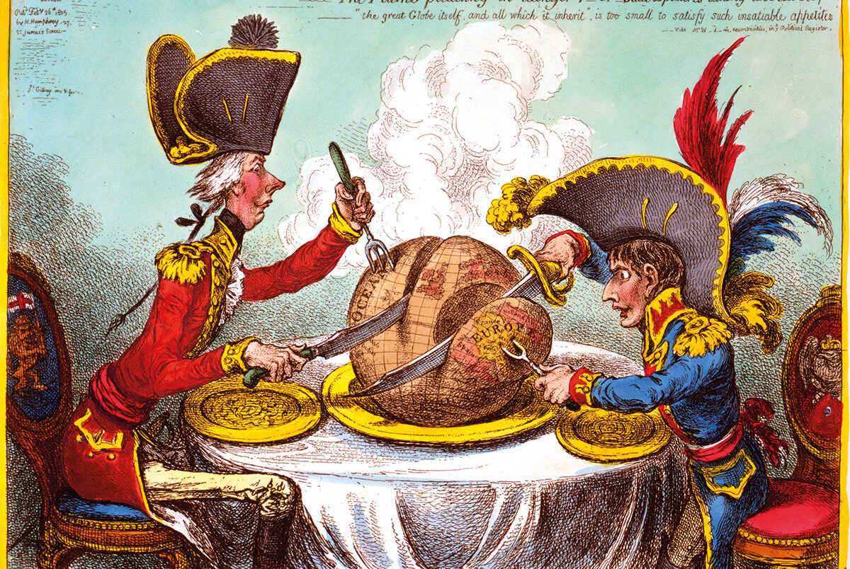 But the first father of the political cartoon was James Gillray, a British caricaturist and printmaker who began applying his satirical eye – and pencil – to current events nearly a century earlier. Gillray had a knack for savagely comic caricatures, explains the National Portrait Gallery, exposing “corruption and moral failings while mocking folly, greed and lechery” with drawings targeting everything from the French Revolution to the Napoleonic Wars and the British royal family. Drawn in 1805, Gillray’s ‘The Plumb-Pudding in Danger’ is considered one of history’s greatest political cartoons for its depiction of French emperor Napoleon Bonaparte and British prime minister William Pitt carving up a globe-shaped pudding, a damming indictment against the imperialist values of the time.