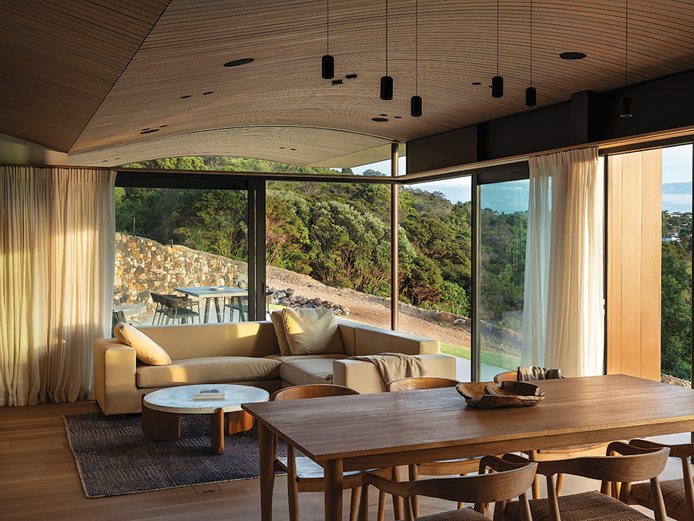 IMAGE: HURUHI, WAIHEKE BY BOSSLEY ARCHITECTS. CURTAINS: DRIFT BY JAMES DUNLOP. PHOTO: SAM HARTNETT.