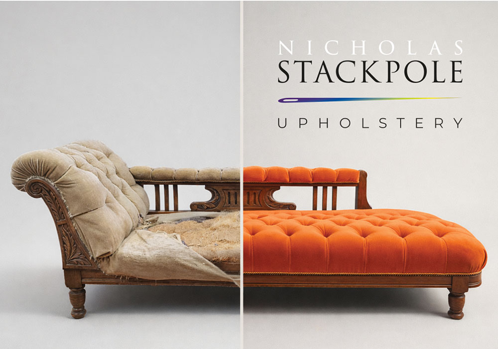 Restore and revive your treasured furniture with Nicholas Stackpole upholstery. Specialising in antique furniture restoration and bespoke pieces, Nicholas combines craftsmanship with an extensive range of premium fabrics – tailored to your style. Enjoy a seamless service with convenient furniture pick-up and delivery. Whether restoring an heirloom or creating something unique, your furniture is in the best of hands with Nicholas Stackpole.