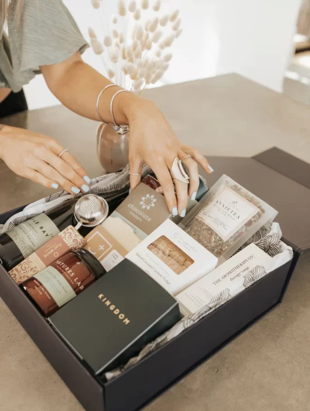 A beautiful pre-curated gift box filled with quality items to celebrate a new home.