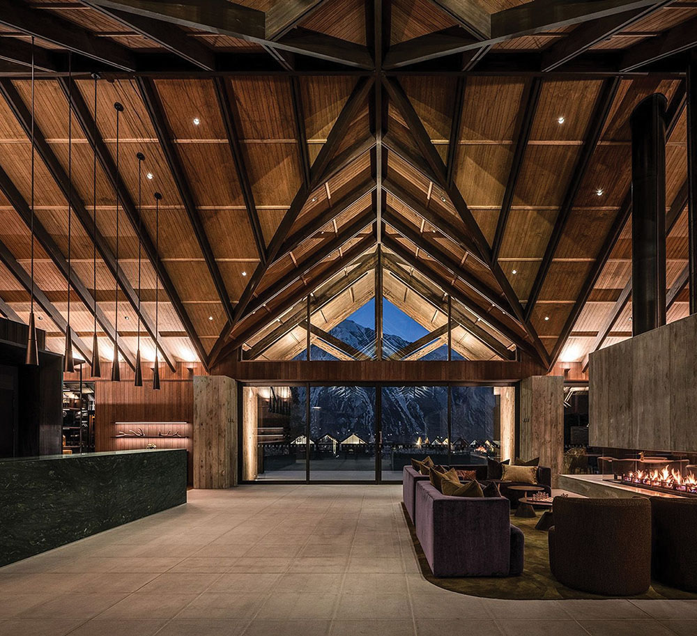 Inside, the interiors are warm and understated – think soft wool throws, polished timber, stone and leather – with just enough modern touch to remind you you’re in the lap of luxury. The four bedrooms boast king-size beds, gas fireplaces, underfloor heating, private terraces and luxe ensuites with freestanding baths positioned for the view. Communal spaces draw you together: a soaring lounge with an open hearth, a snug den with a vinyl deck, and a terrace complete with a pool, spa and firepit for starlit evenings.