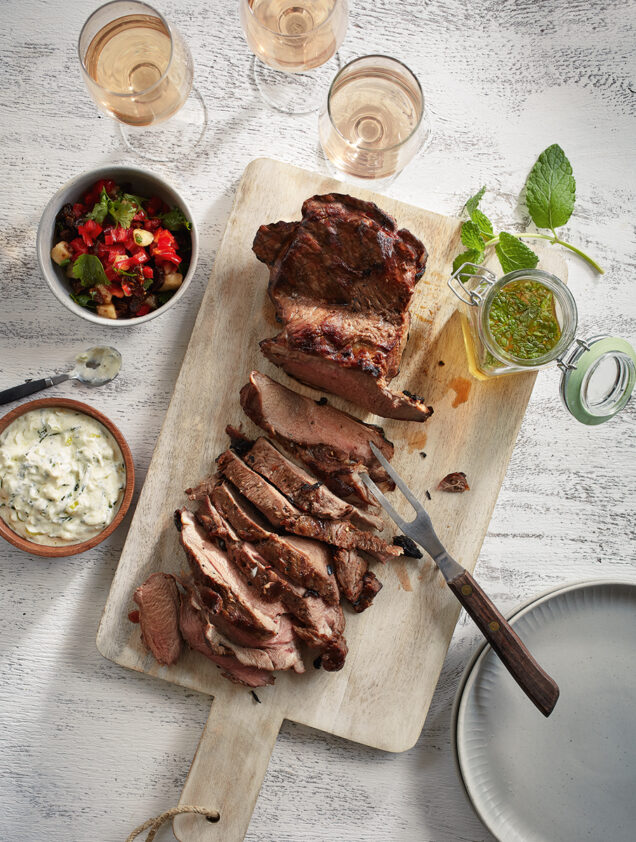 Bring to room temperature (take it out of the fridge at least an hour before cooking), then barbecue over a medium-high heat for 17 minutes per side exactly. Cover with a foil tent and rest for 15 minutes, then carve into slices.