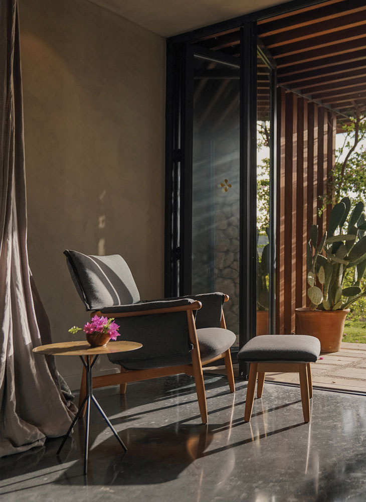Heritage has not been restored here; it has been reinterpreted with care, reverence and architectural clarity. The interiors draw on a palette of raw oak, rusted iron, black-tinted concrete and local pebbles – materials that echo the monastery’s past while giving shape to a minimalist language of today.