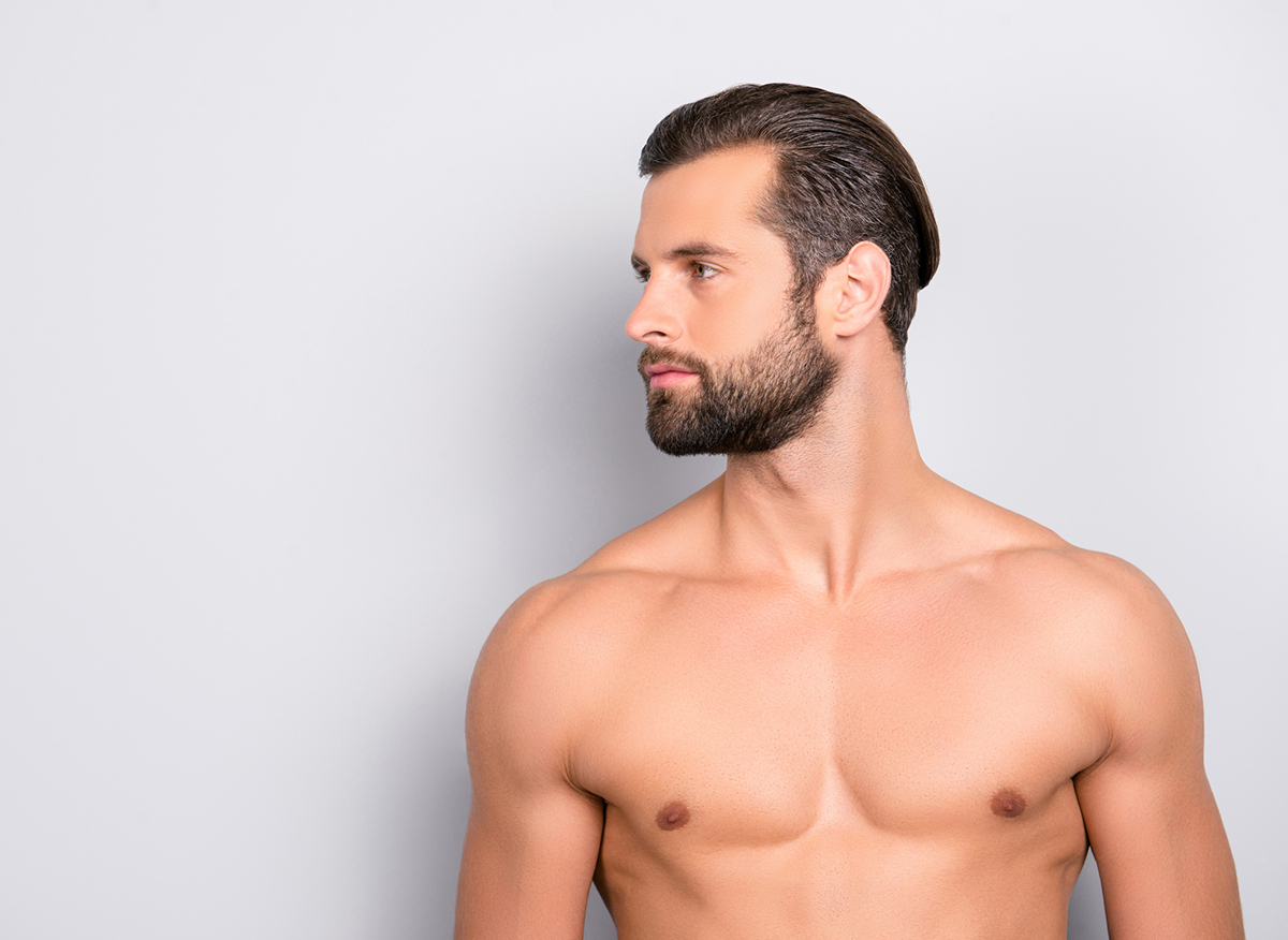 Shaving, waxing and sugaring are all options, but a simpler option is to keep it neatly clippered. You won’t get as smooth a finish but you’ll still be able to see muscle definition beneath, and if you trim hair to a centimetre or so in length you’ll avoid the itchy regrowth associated with shaving.