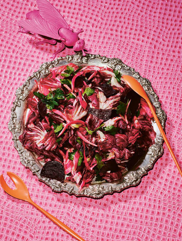 Tear the radicchio wedges into uneven pieces and add to the beetroot.