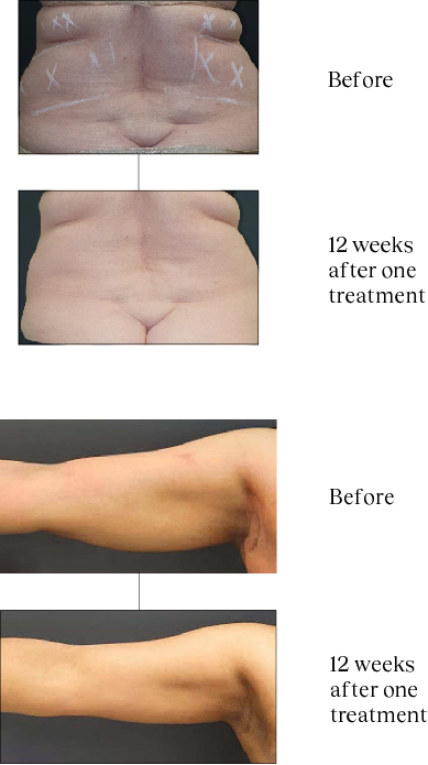 Clients will begin to see a change in their silhouette from 6–8 weeks post treatment, but maximum results are achieved at week 12. Changes in skin quality, tone and texture are usually seen earlier. Each area can be treated once per 12 weeks but other areas can be treated before then.