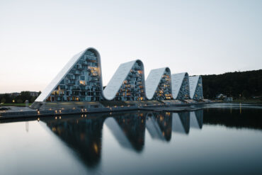In part inspired by the Sydney Opera House, The Wave is a similarly spectacular waterside structure that sports imposing undulations.