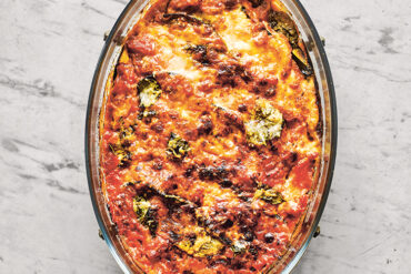 This dish is a celebration of the most famous ingredients from the south of Italy: eggplant (aubergine), mozzarella, and tomatoes.
