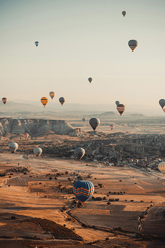 Hot air balloon. A truly unforgettable experience in Cappadocia that offers breathtaking views of the sunrise, colourful skies, fairy chimneys, and serene landscapes, making it a must-do activity for visitors to this remarkable region.