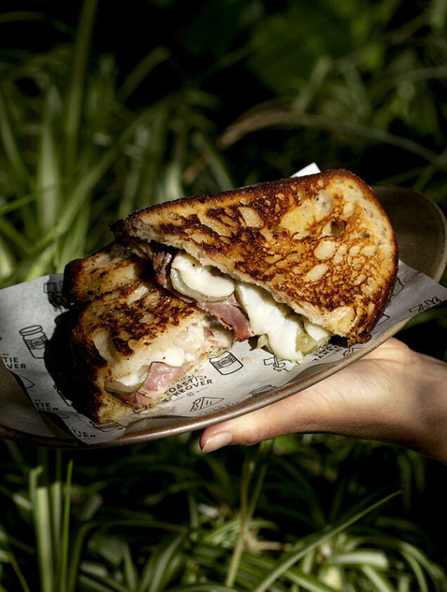 Good Day (Orakei): Croc MonShaw: Thick cut free range smoked ham (from local butcher the legend Mr Chris Knight), lashings of cheesy, mustardy bēchamel sauce, crunchy McClure’s Sweet & Spicy Pickles and more cheese for the ultimate melt, on local baker the Dusty Apron’s grilled sourdough.