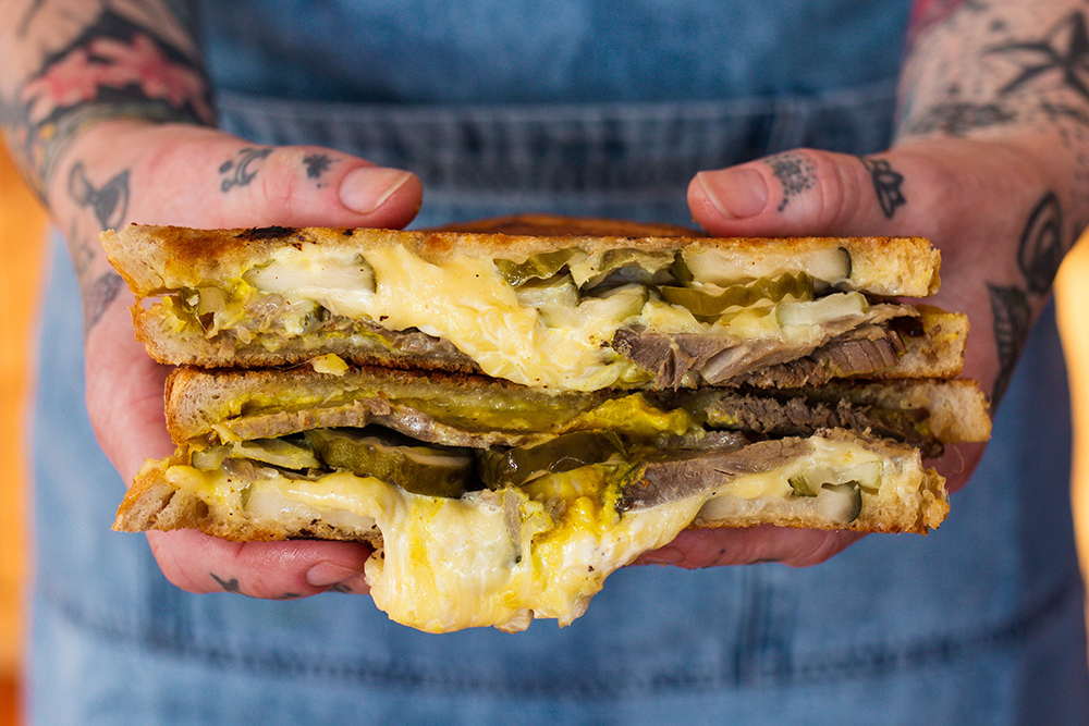 Roasted and Toasted (Lumsden): Sheep Thrills: Slow roasted Southland lamb, Old Yella mustard, creamy mayo, McClure’s Bread & Butter Pickles, three cheese blend and Kel’s homemade McClure’s pickle jelly.