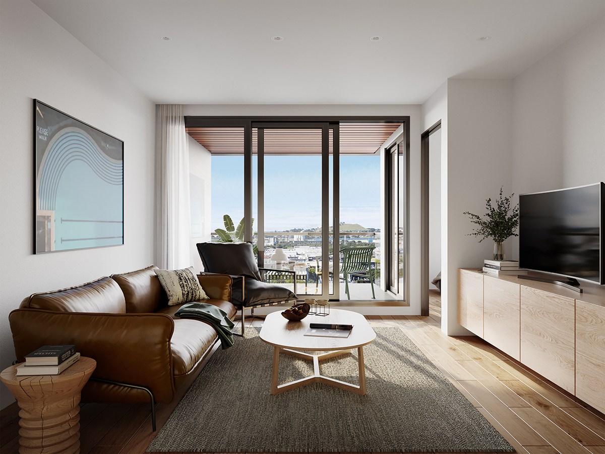 The design is unmistakably contemporary, with quality built into the bones of the building. Set back from the road so as not to disrupt the feel of the frontage, levels above the podium offer 360 degree views of One Tree Hill, the greenery of Mt Wellington and Māngere Bridge, the drama of the Manukau Harbour and Heads beyond; outlooks that you’ll be able to enjoy from your balcony or terrace, some as large as 48sqm.