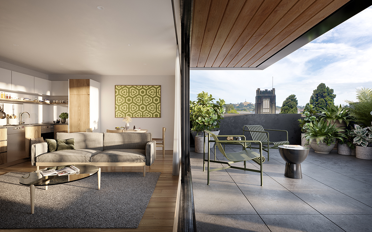 In the heart of that village, where the local Workingmen’s Club once stood, a landmark tower with large and liveable apartments will rise, offering residents outlooks to the four corners of Auckland.
