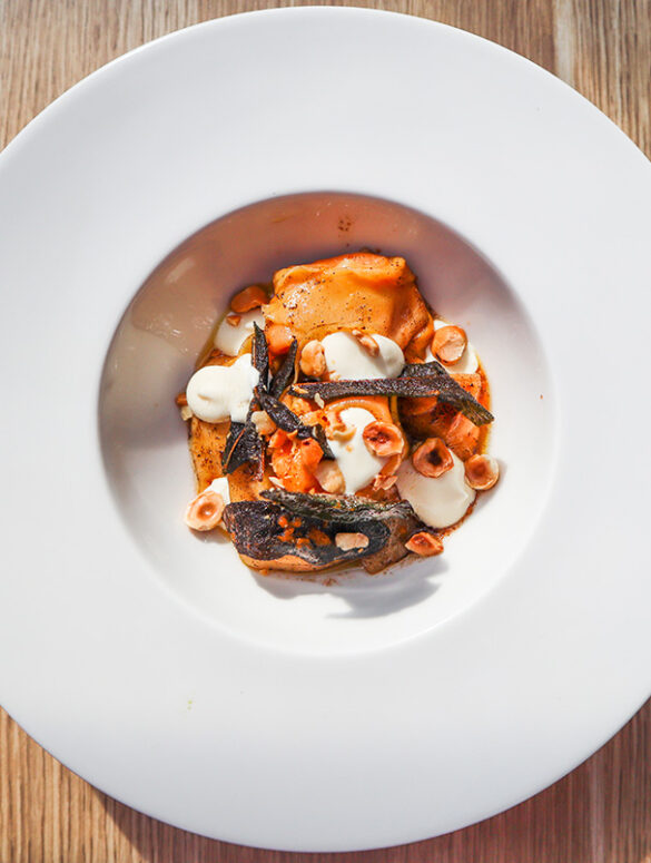 Our pastas are really good and definitely my favourites. Our signature dish is tortelloni with kumara and goats’ cheese, tossed in burnt butter and sage and topped with toasted hazelnut. I have a pretty strong sweet tooth and one dessert I really like at the moment is a crostata with Nashi pears from Taranaki and nuts from a local farm.