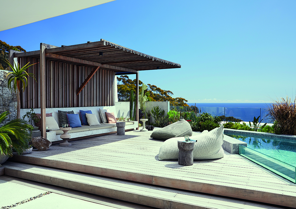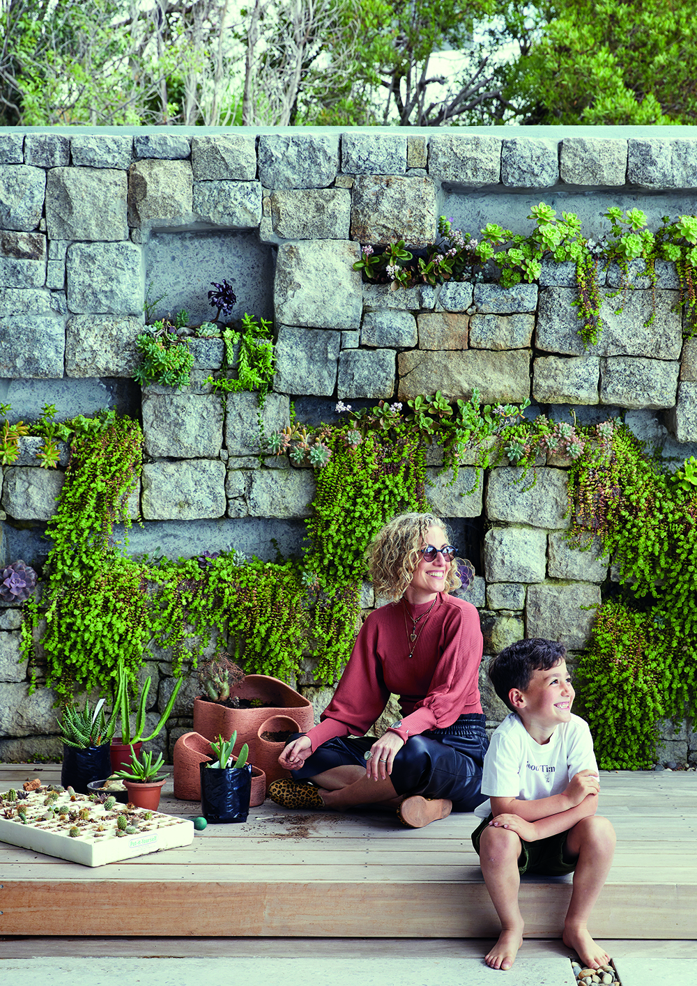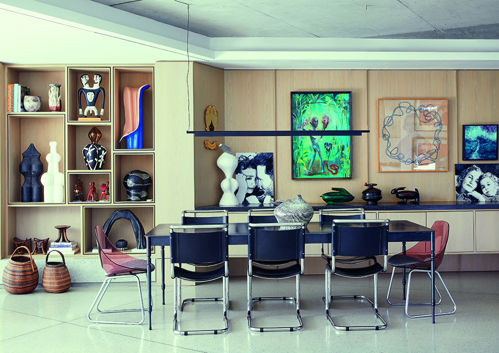 As a ceramicist, Martine Jackson is no stranger to teasing beauty out of the muted clay she works with. So, when she and her husband acquired an unfinished apartment on Cape Town’s Atlantic Seaboard, she was undaunted by the task of shaping a family home out of the stark concrete form and geometrically fragmented interior she was presented with. Installing swathes of bespoke oak cabinetry was the starting point of making the new residential complex unit a layered and exciting space to accommodate and celebrate her work. Her choice of bright, soft furnishings, a striking floating kitchen island, and a succulent-laden deck combine to give it a quirky yet laidback charm.